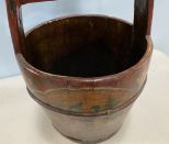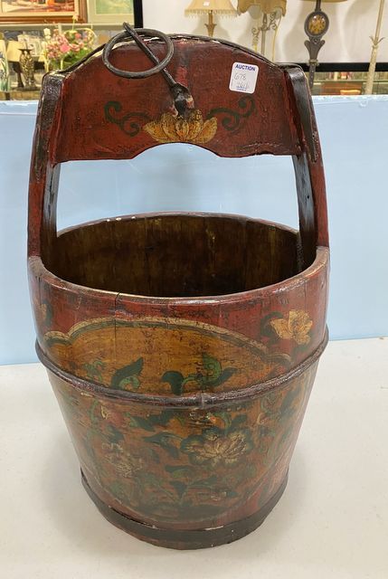 Reproduction Red Painted Water Bucket, floral design, 22"h. Reproduction Red Painted Water Bucket, floral design, 22"h.