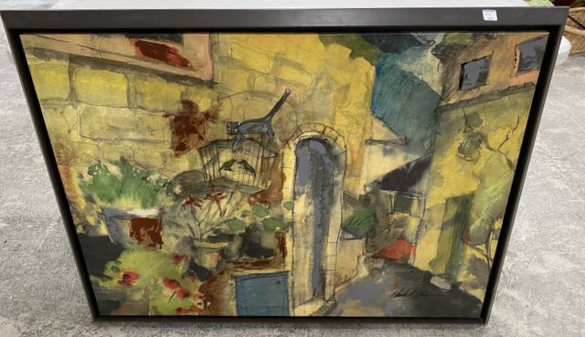 Large Abstract print, with artist signature, framed, 33"h., 43"w. Large Abstract print, with artist signature, framed, 33"h., 43"w.
