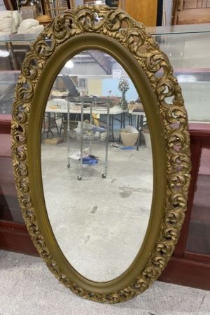 Antique Ornate Plaster Framed Oval Mirror, has some chips, 49"h. Antique Ornate Plaster Framed Oval Mirror, has some chips, 49"h.