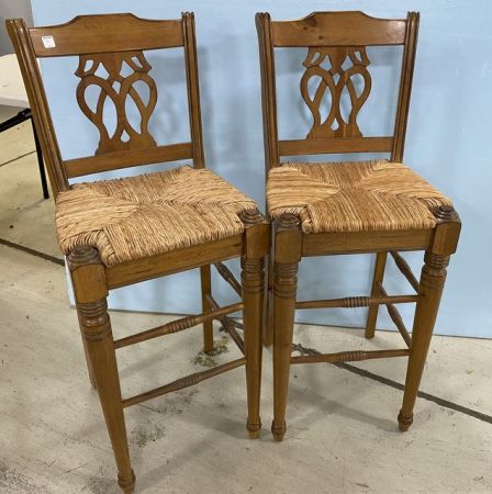 Pair of Modern Antique Style Bar Stool, woven seats, 44"h. Pair of Modern Antique Style Bar Stool, woven seats, 44"h.