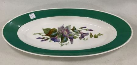 Large Flora porcelain oval platter, has rim chip, 23". Large Flora porcelain oval platter, has rim chip, 23".