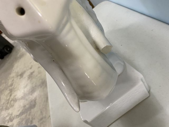 White Porcelain Elephant Plant Stand, has one broken tusk, 21"h., 22"w. White Porcelain Elephant Plant Stand, has one broken tusk, 21"h., 22"w.