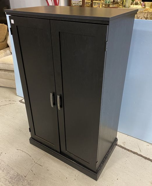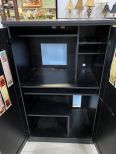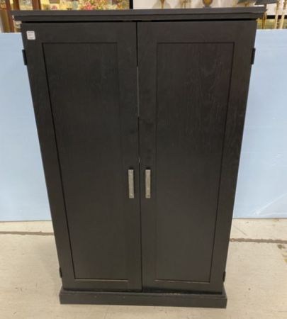 Modern Small Computer Cabinet, double door, pressed wood, light wear, 52"h., 32"w. Modern Small Computer Cabinet, double door, pressed wood, light wear, 52"h., 32"w.