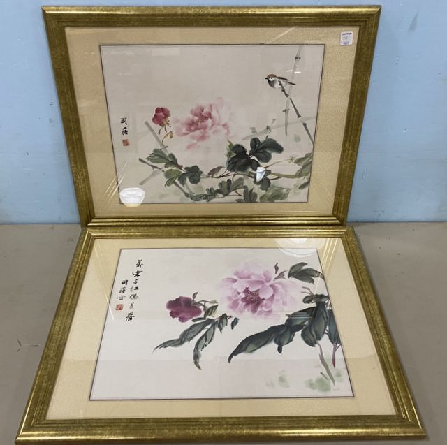 Two Chinese Prints, matted, gold gilt framed, 20"h., 26"w. Two Chinese Prints, matted, gold gilt framed, 20"h., 26"w.