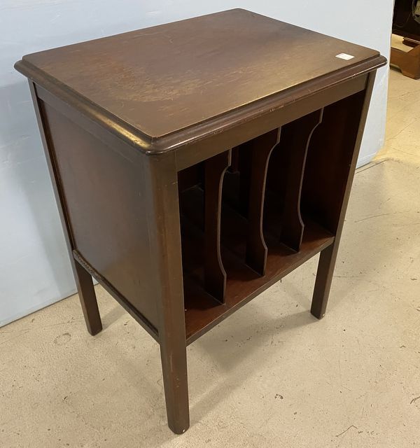 Mahogany Music album stand, 4 slot, has worn finish, 28"h., 21"w. Mahogany Music album stand, 4 slot, has worn finish, 28"h., 21"w.