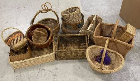 Large group of decorative baskets, assorted styles. Large group of decorative baskets, assorted styles.