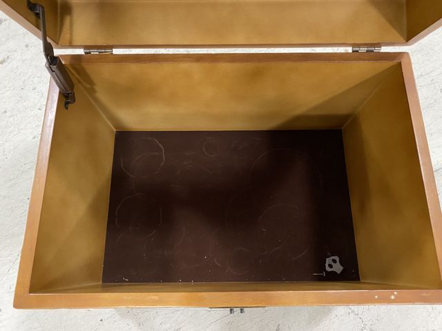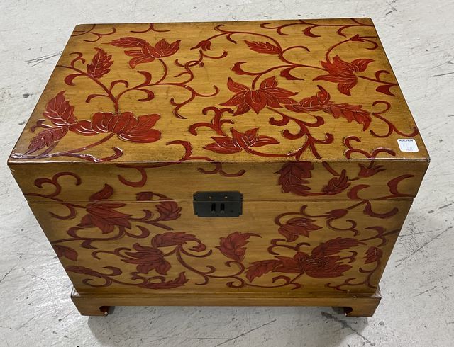 Modern Decorative Storage Trunk, lift top, latch is damaged, 19"h., 24"w. Modern Decorative Storage Trunk, lift top, latch is damaged, 19"h., 24"w.