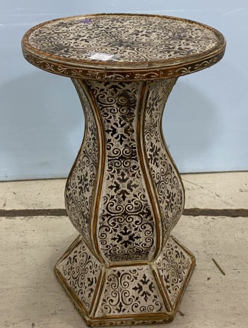 Decorative pedestal stand, factory white painted, 20"h., 12"dia. Decorative pedestal stand, factory white painted, 20"h., 12"dia.