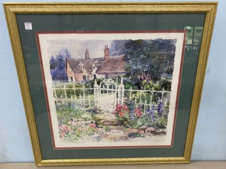 Dalina Barton Watercolor Homeplace Print, 1990, matted, gold gilt framed, 30"h., 30"w. Dalina Barton Watercolor Homeplace Print, 1990, matted, gold gilt framed, 30"h., 30"w.