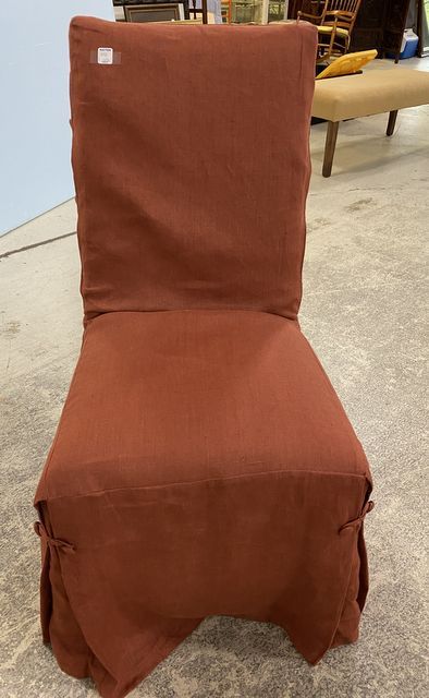 White Upholstered Chair with Red Slip Cover. White Upholstered Chair with Red Slip Cover.