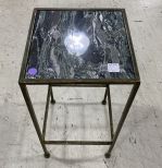 Small Square top stand, metal frame, tile top, 20"h., 10"w. Small Square top stand, metal frame, tile top, 20"h., 10"w.