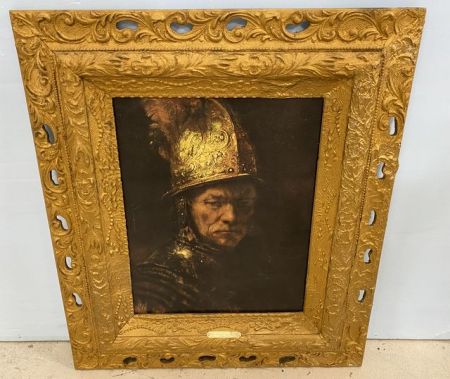 Man with the Golden Helmet, Rembrandt Print, on poster board, name tag, gold wood framed, 31"h., 27"w. Man with the Golden Helmet, Rembrandt Print, on poster board, name tag, gold wood framed, 31"h., 27"w.