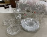 Pressed Glass Bowls, Vase, Divided Dish, Jar, Glass Plates Pressed Glass Bowls, Vase, Divided Dish, Jar, Glass Plates
