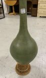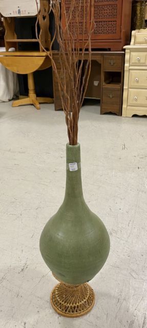Decorative Mexico pottery vase with plants, and woven base, vase is 20"h. Decorative Mexico pottery vase with plants, and woven base, vase is 20"h.