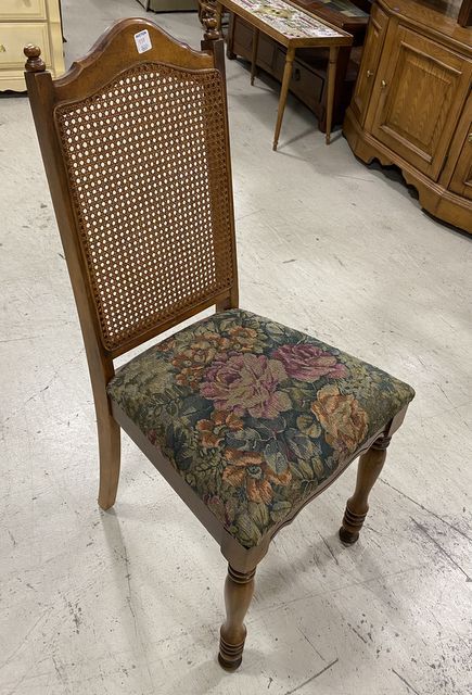 Country French Cane Back Chair, 1970's-80's, floral fabric cushion. Country French Cane Back Chair, 1970's-80's, floral fabric cushion.