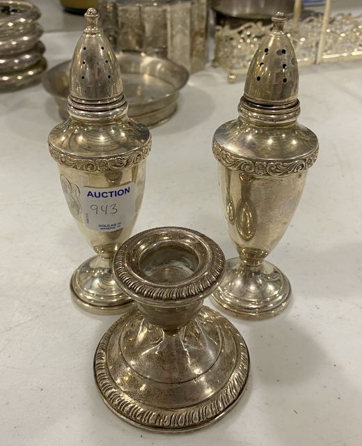 943 Sterling Salt & Pepper Shakers, Weighted Sterling Candle Holder