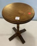 Small wood pedestal stand, round top, 18"h., 9"dia. Small wood pedestal stand, round top, 18"h., 9"dia.
