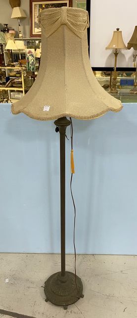 Vintage Metal floor lamp, worn vintage shade, 66"h. Vintage Metal floor lamp, worn vintage shade, 66"h.