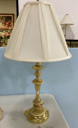 Brass Candle Stick Lamp, with shade, 30"h. Brass Candle Stick Lamp, with shade, 30"h.