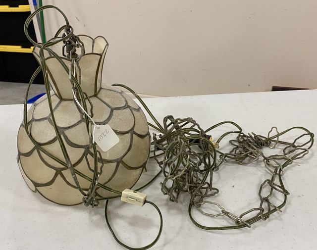Vintage Plastic Dome Hanging Light Fixture, with chain and plug, 9"h. Vintage Plastic Dome Hanging Light Fixture, with chain and plug, 9"h.