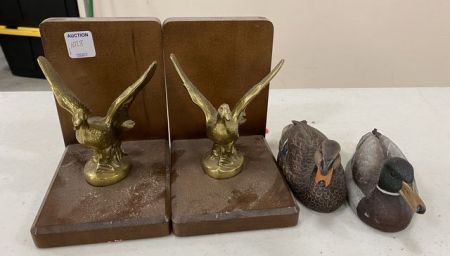 1028 Brass Duck Bookends, Two Resin Miniature Ducks
