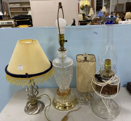 Clear glass oil style lamp with hurricane shade, small glass lamp, pressed vase glass lamp, contemporary metal desk lamp. Clear glass oil style lamp with hurricane shade, small glass lamp, pressed vase glass lamp, contemporary metal desk lamp.
