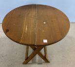 Folding Pine table, round top, has finish wear, 24"h., 24"dia. Folding Pine table, round top, has finish wear, 24"h., 24"dia.