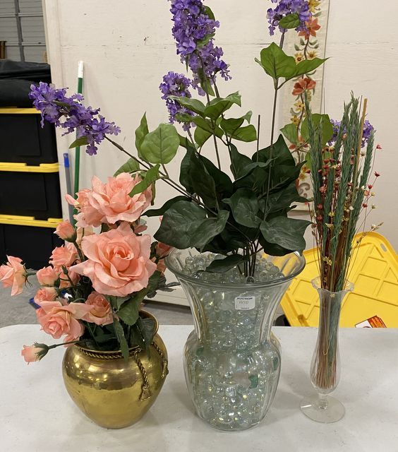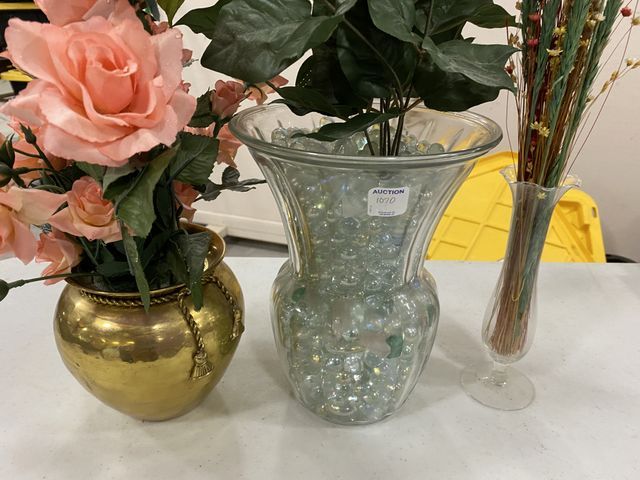 Glass Flower Vase, Footed Glass Vase, Brass Urn Planter Glass Flower Vase, Footed Glass Vase, Brass Urn Planter