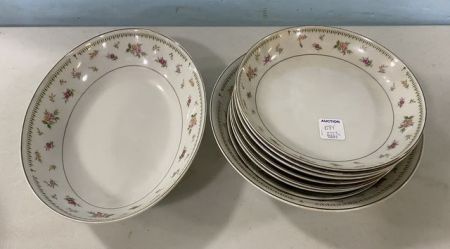 Abingdon Porcelain China Bowls, 6 salad bowls, some have chips, serving bowl, oval bowl. Abingdon Porcelain China Bowls, 6 salad bowls, some have chips, serving bowl, oval bowl.
