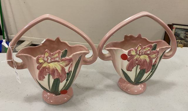 1097 Pair of Hull Pottery Basket Vases