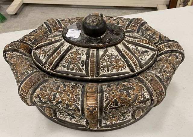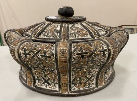 Wood painted decorative box, with lid, 16"w. Wood painted decorative box, with lid, 16"w.