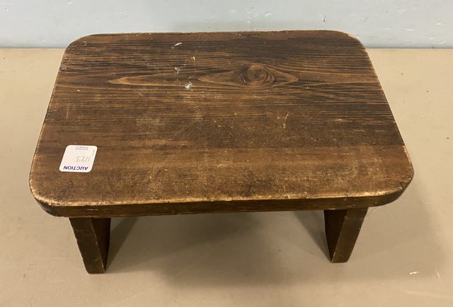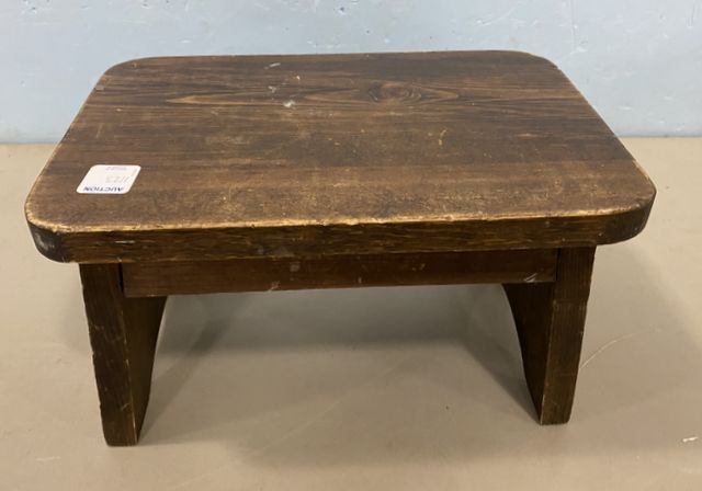 Small Pine foot stool, finish wear, 7"h., 12"w. Small Pine foot stool, finish wear, 7"h., 12"w.