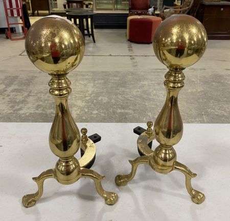 Vintage Brass Andirons, has tarnish wear, 16"h Vintage Brass Andirons, has tarnish wear, 16"h