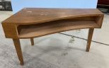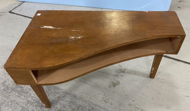 Hand Made Three Leg Side Table, open front storage, painted, has damage on finish, 26"h., 43"w., 23"d. Hand Made Three Leg Side Table, open front storage, painted, has damage on finish, 26"h., 43"w., 23"d.