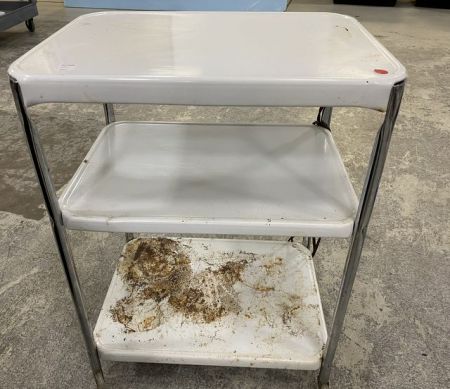 Vintage Metal Three Tier Rolling Cart, 29"h., 22"w. Vintage Metal Three Tier Rolling Cart, 29"h., 22"w.