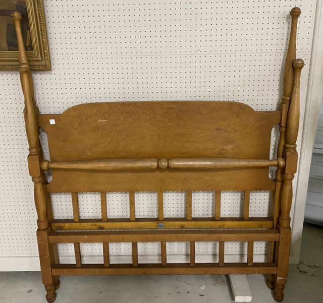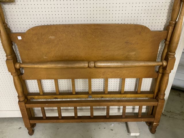 Arielwood Bed Co. Birds Eye Maple Full Bed, mini post, with rails, age wear. Arielwood Bed Co. Birds Eye Maple Full Bed, mini post, with rails, age wear.