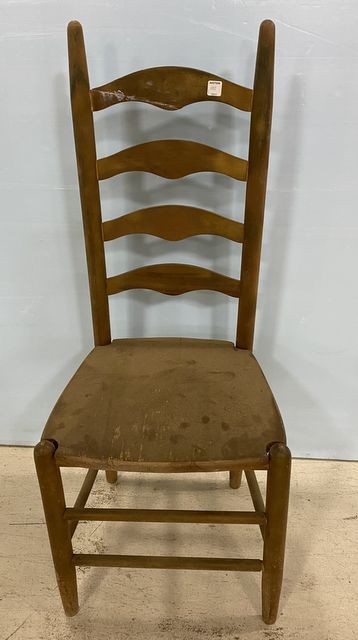 Vintage Slat Back Side Chair, top slat has crack, has age wear. Vintage Slat Back Side Chair, top slat has crack, has age wear.