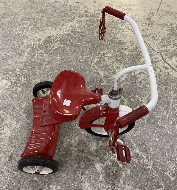Vintage Red Tricycle, red and white painted, light wear. Vintage Red Tricycle, red and white painted, light wear.