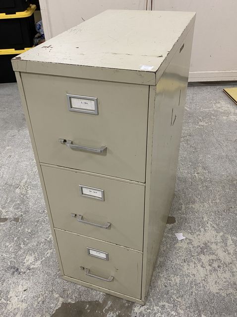 Three Drawer File Cabinet, used condition. Three Drawer File Cabinet, used condition.