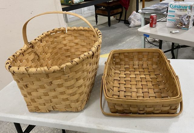 Spilt Oak Woven Baskets, with handles, largest is 10"h., 21"w., good condition. Spilt Oak Woven Baskets, with handles, largest is 10"h., 21"w., good condition.