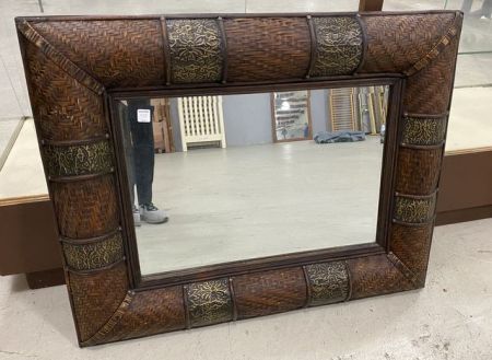 Decorative Wicker Style Wall Mirror, beveled, 29"h., 37"w. Decorative Wicker Style Wall Mirror, beveled, 29"h., 37"w.