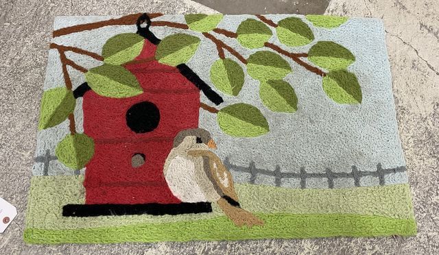 Hook style mat, birdhouse design, 22" x 33". Hook style mat, birdhouse design, 22" x 33".