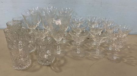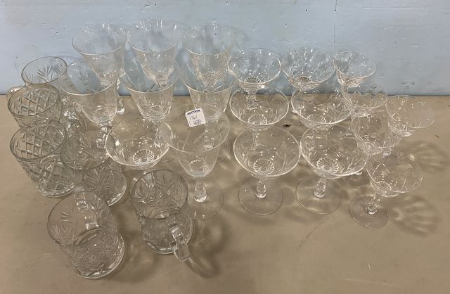 Group of 17 Etched Glass Stemware, crystal, stems. Group of 17 Etched Glass Stemware, crystal, stems.