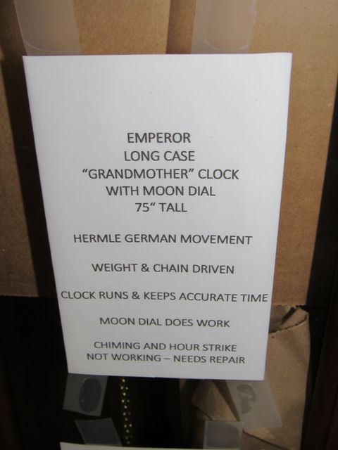 Hermle German Movement Weight and Chain Driven. Chime and hour chime does not work. Measures 75" h. Hermle German Movement Weight and Chain Driven. Chime and hour chime does not work. Measures 75" h.