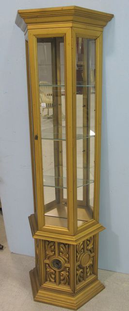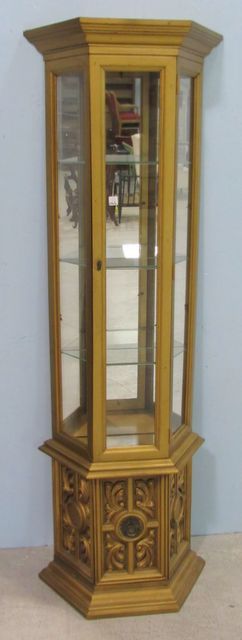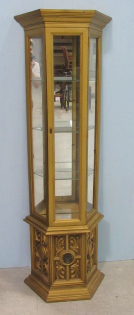 500 Gold Curio Cabinet with Three Sided Glass and a Mirrored Back and a Lower Cabinet Bottom