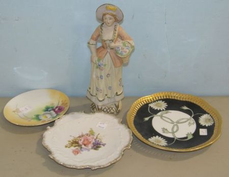 700 Meito China Plate, a Porcelain Plate, a Dee McCowan Painted Plate and a Bisque Occupied Japan Figurine