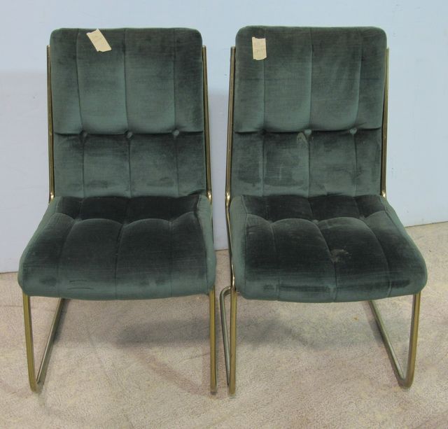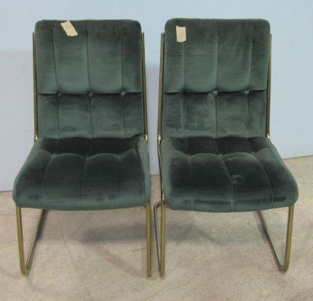 820 Two Green Velour Upholstered Metal Frame Chairs