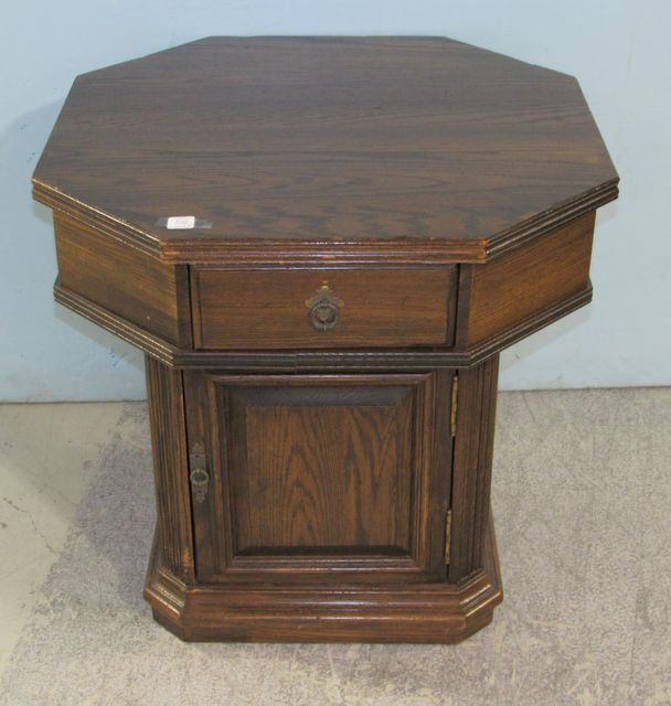 828 Ethan Allan Pedestal Style Side Table with One Drawer and One Door