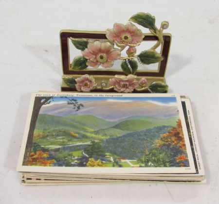 475 Enamel Card Holder with Approximately Thirty-Five Vintage Postcards