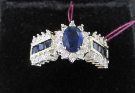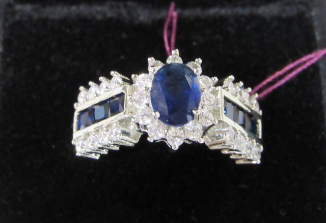613 Oval Blue Colored Center Stone Surrounded by Clear Stones